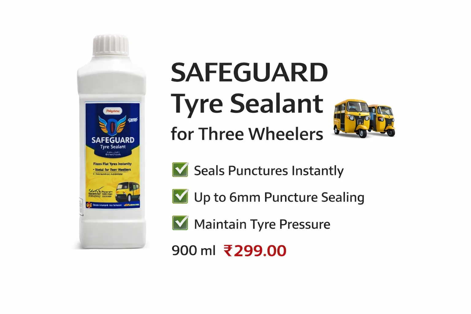 Our specially tested sealant works silently inside your tyres, sealing punctures instantly and preventing dangerous air leaks. From city commutes to long highway drives, it ensures your tyres remain safe, durable, and road-ready.